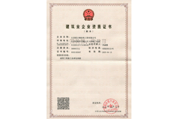 您好,歡迎訪問江蘇聯方鋼結構工程有限公司企業網站!